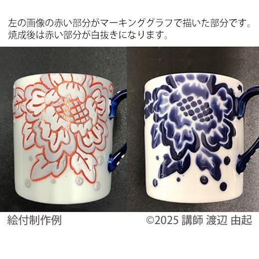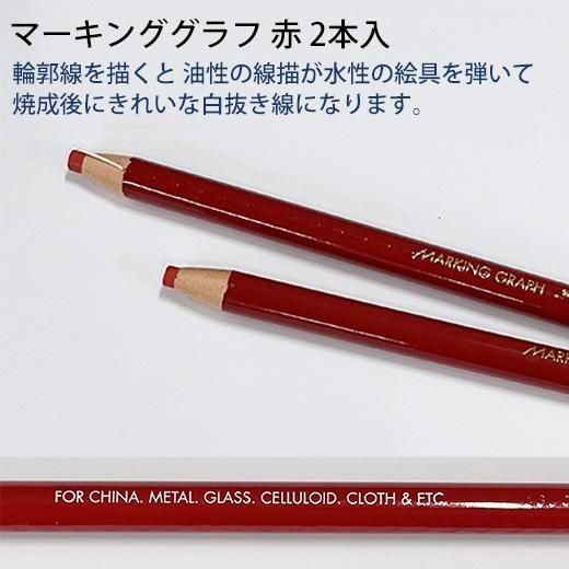 【油性の線描が水性の絵具を弾いて、焼成後にきれいな白抜き線になります】マーキンググラフ 赤 2本入